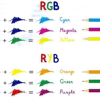 When dealing with mixing colors in the RGB arena, it’s just the opposite. You are starting with black and adding light to create color. This is why red and green create yellow on your TV screen but you need yellow and blue to create green when working with paint.